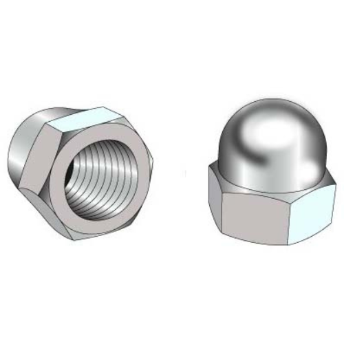 Hex Dome Nuts (also known as Acorn Nuts) got its name due to the dome-shaped projection on one side of the nut. This is mostly used to protect objects close to the ends of screws from scratches and structural injuries. It also reduces the effects of physical mishaps on human skin if it somehow forcefully hits the fasteners.