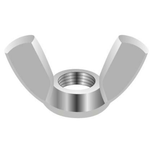 A Wing Nut (also known as Butterfly Nut) is a type of nut with two large metal wings, one on each side 180° apart, so it can be easily tightened and loosened by hand without tools.